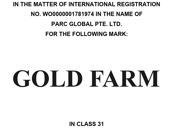 今日のポイントthe opponent’s mark is a word only mark that consists of two words ‘GOLD FARM’