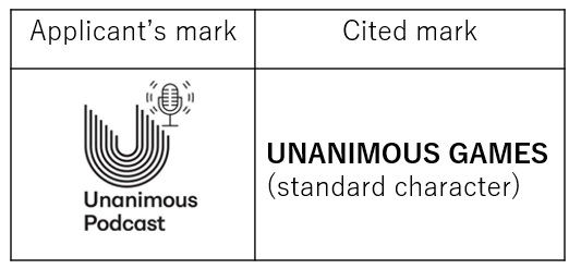 商標審判部、「Unanimous Podcast」と「UNANIMOUS GAMES」とは商標類似と判断