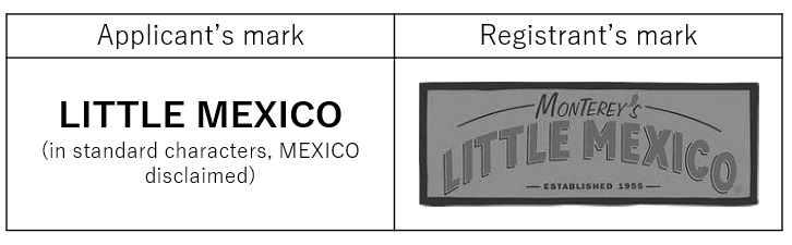 テイクアウト・レストランサービスにおける商標「LITTLE MEXICO」(MEXICOはディスクレーム)の登録を拒絶