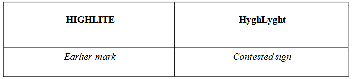 被異議商標は、一つの語「HyghLyght」からなり、関連公衆に、同音異義語である「highlight」の普通とは違ったスペルミスによるものと認識されるであろう。観念についても、これと同様に考えられる。