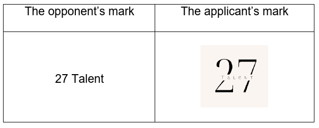 出願商標は、「Talent 27」というより、「27 Talent」と認識される
